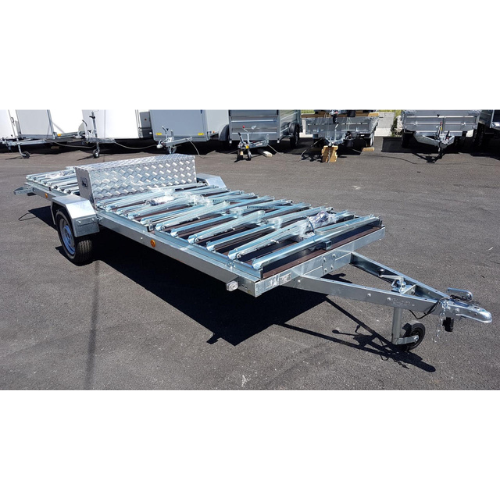 REMOLQUE DE PLATAFORMA 375 X 135 CM PROVISTO PARA EL TRANSPORTE DE 15 BICICLETAS